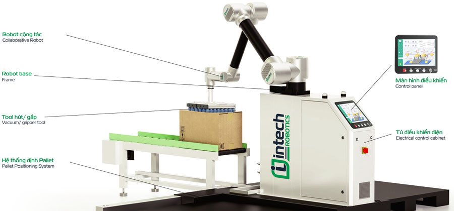 - Economical and practical: Palletizing robot station brings high economic efficiency, average payback period is from 1 to 2 years.