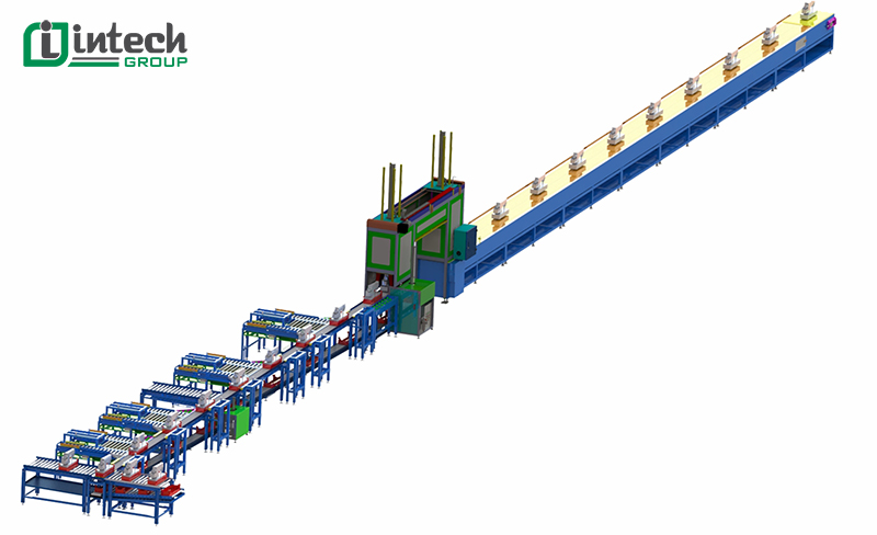 Hệ thống giúp chuyển lazang ô tô từ xưởng đúc sang xưởng gia công một cách tự động. Sau khi gia công tinh lazang xong thì hệ thống sẽ vận chuyển lazang ra khu chất xếp, còn khay chứa sẽ được vận chuyển lại xưởng đúc