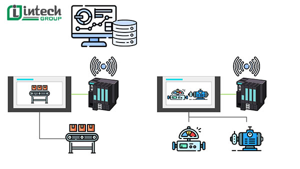Ví dụ, nếu hệ thống đang giám sát một thiết bị trong nhà xưởng, khi đó PLC có thể thu thập dữ liệu cho thấy máy móc đang vận hành hiệu quả như thế nào và SCADA sẽ tiếp nhận thông tin đó, phân tích để đưa ra quyết định tiếp theo