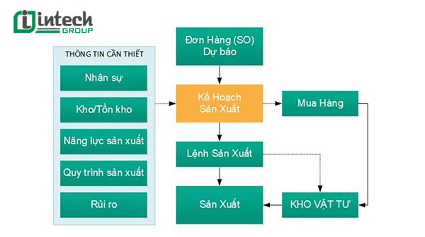 Bước 2 (Lập kế hoạch sản xuất): Sau khi tiếp nhận yêu cầu từ kinh doanh, bộ phận kế hoạch của doanh nghiệp sẽ lập kế hoạch sản xuất dựa trên năng lực về máy móc, thiết bị, nhân công, thời gian và nguyên vật liệu thực tế của của nhà máy
